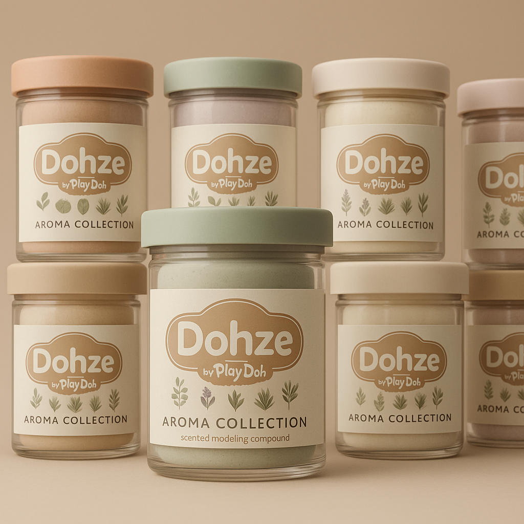 Play-Doh Aroma collection for adults with a minimalist and calming aesthetic focusing on herbal botanical scents.The dough is packed in glass packaging keeping the dough super fresh with its texture and amazing botanical scents.